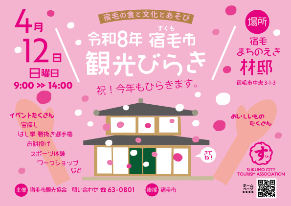 宿毛市の春の観光シーズンのオープニングイベント「令和8年宿毛市観光びらき」が4/12(日)、宿毛まちのえき林邸にて開催されます。...
